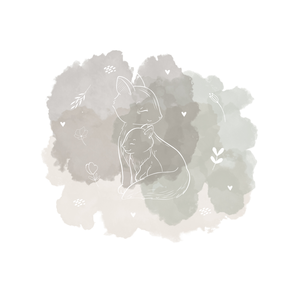 Trendy geboortekaartje met zwart folie voor je pasgeboren zoon. Op dit kaartje zie je een hippe lijntekening van twee vosjes op een donkergroene waterverf achtergrond. De details om de vosjes heen zijn erg speels.