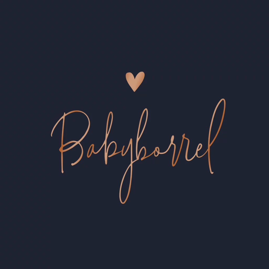 Kondig de babyborrel van jullie kindje aan met dit lieve kaartje. Het kaartje heeft een donkerblauwe achtergrond met hoogglans hartje en typografie.