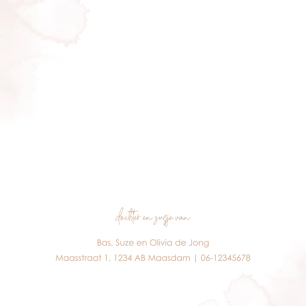 Op dit lieve geboortekaartje voor jullie dochtertje staat de illustratie van een bloemenkrans. De roze watercolour achtergrond en roségoudfolie elementen maken dit kaartje helemaal compleet. Bestel een proefdruk om dit kaartje in het echt te zien!