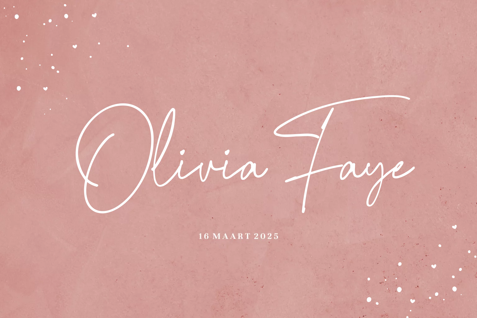 Kondig de geboorte van jullie dochtertje aan met dit stoere kaartje. Het kaartje heeft een roze velvet-look achtergrond. De naam en verfspetters worden gedrukt in goudfolie. Bestel snel een proefdruk om dit kaartje in het echt te zien!