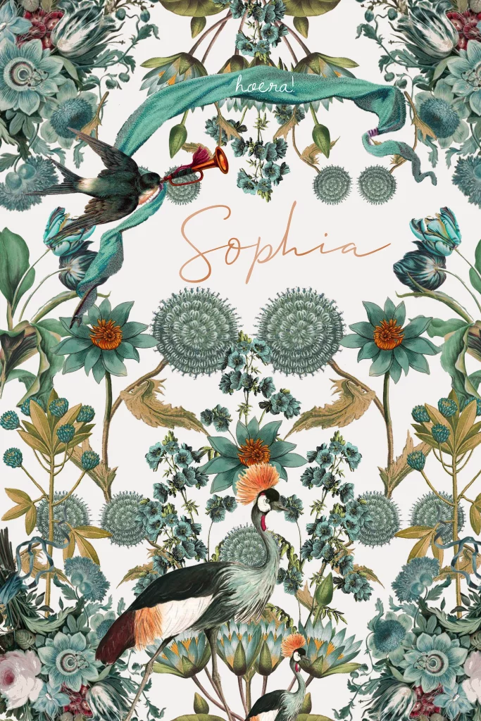 Dit is een bohemian kaartje voor jullie pasgeboren dochter. Het kaartje heeft allerlei kleurrijke elementen waardoor dit kaartje extra vrolijk is. De naam wordt gedrukt in hoogglans. Pas het kaartje naar wens aan in onze online editor en bestel snel een proefdruk om dit kaartje in het echt te zien!
