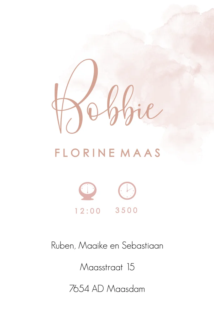 Een lief en schattig kaartje met roségoudfolie om de geboorte van je kleine meisje aan te kondigen. Haar naam staat samen met haar initiaal centraal in het ontwerp. Ook supermooi met goudfolie, dit kan je zelf aanpassen in de editor.