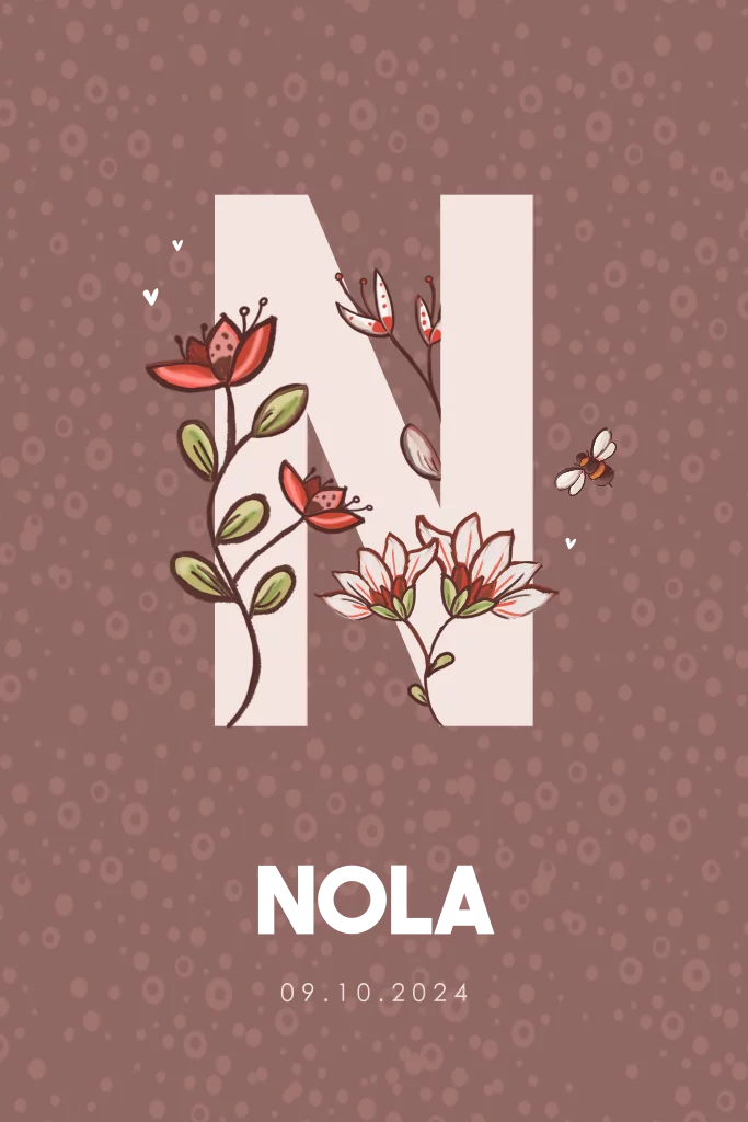Kondig de geboorte van jullie dochtertje aan met dit luxe kaartje. Tegen de paarse achtergrond komt de initiaal duidelijk naar voren. De bloemen maken dit kaartje vrolijk en de naam in roségoudfolie geeft dit kaartje een luxe uitstraling. Pas het kaartje naar wens aan in onze online editor en bestel snel een proefdruk om dit kaartje in het echt te zien!