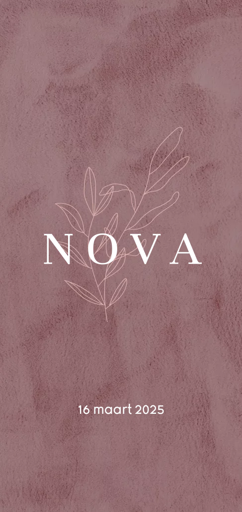 Kondig de geboorte van jullie dochtertje aan met dit mooie kaartje. Het kaartje heeft een paarse velvet-look achtergrond met roségoudfolie opdruk. De lijntekening van het takje geeft deze kaart een extra schattige uitstraling. Pas het kaartje naar wens aan in onze online editor en bestel snel een proefdruk om dit kaartje in het echt te zien!
