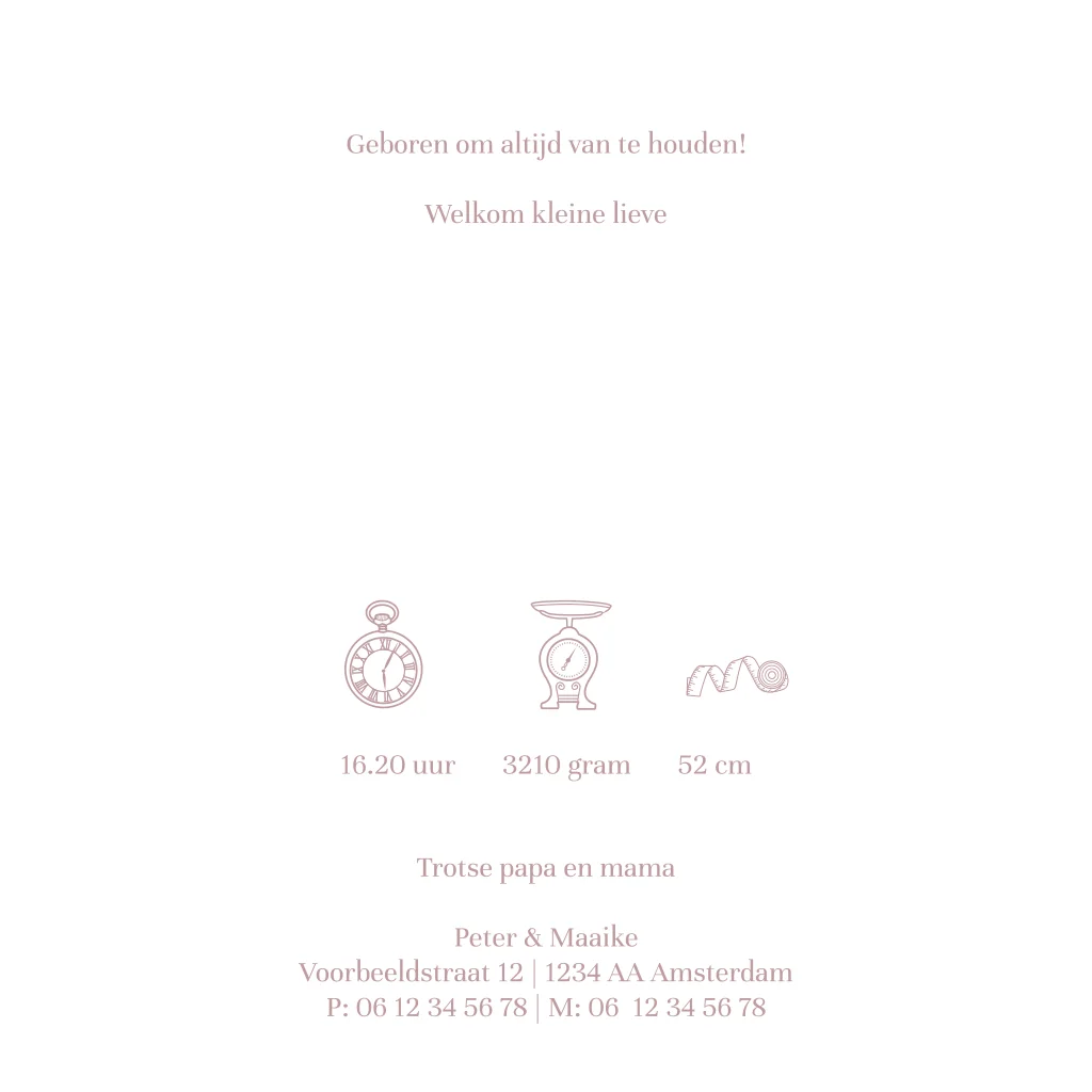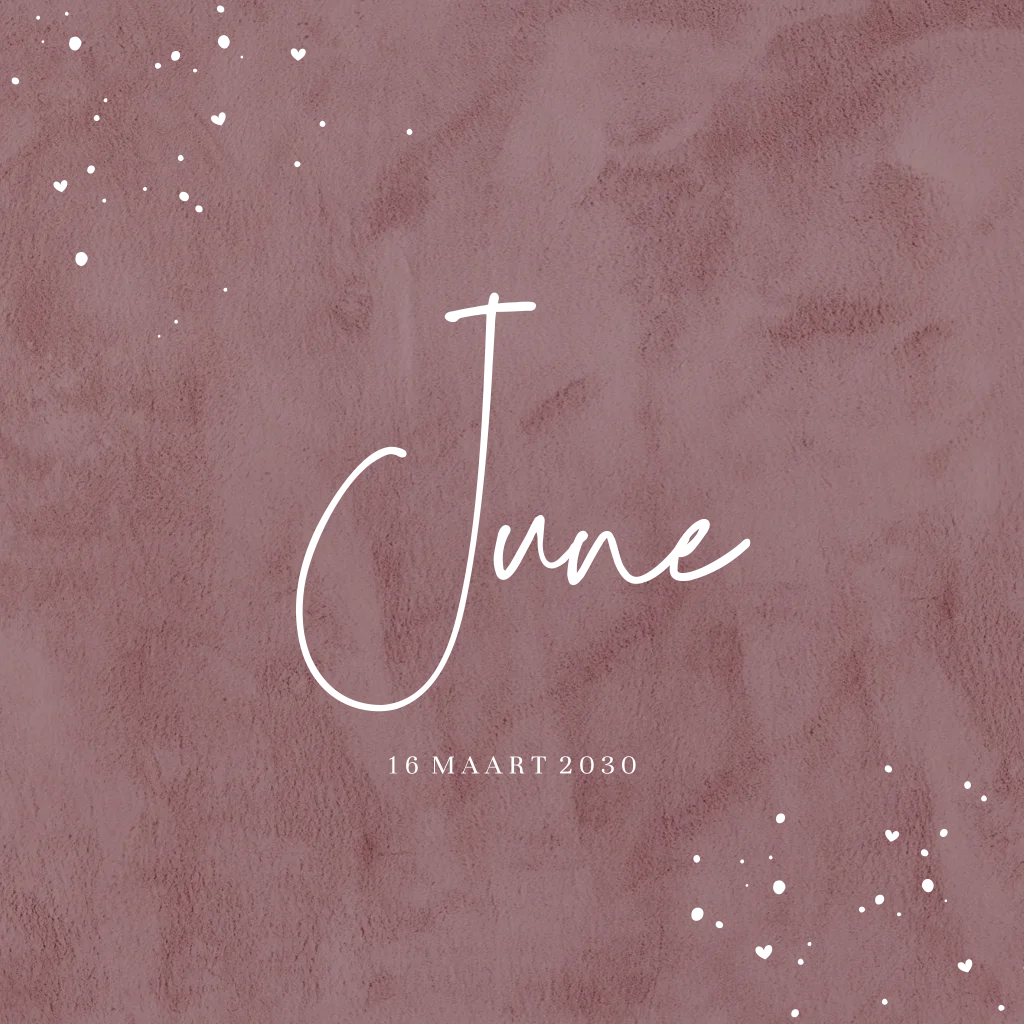 Kondig de geboorte van jullie dochtertje aan met dit prachtige kaartje! De paarse velvet-look achtergrond zorgt voor een stoere uitstraling en de spetters in twee hoeken maken dit kaartje helemaal feestelijk. De naam, geboortedatum en details worden gedrukt in roségoudfolie. Bestel snel en proefdruk om dit kaartje in het echt te zien!