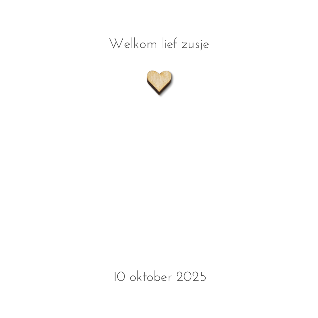 Goed om te weten: Het houten vormpje wordt niet standaard meegeleverd, dit kun je gemakkelijk zelf toevoegen tijdens het bestelproces. Je vindt alle bevestigingsmaterialen hier. Wanneer je de geboortekaartjes ontvangt, kun je het kaartje zelf verrijken met het gekozen houten vormpje.