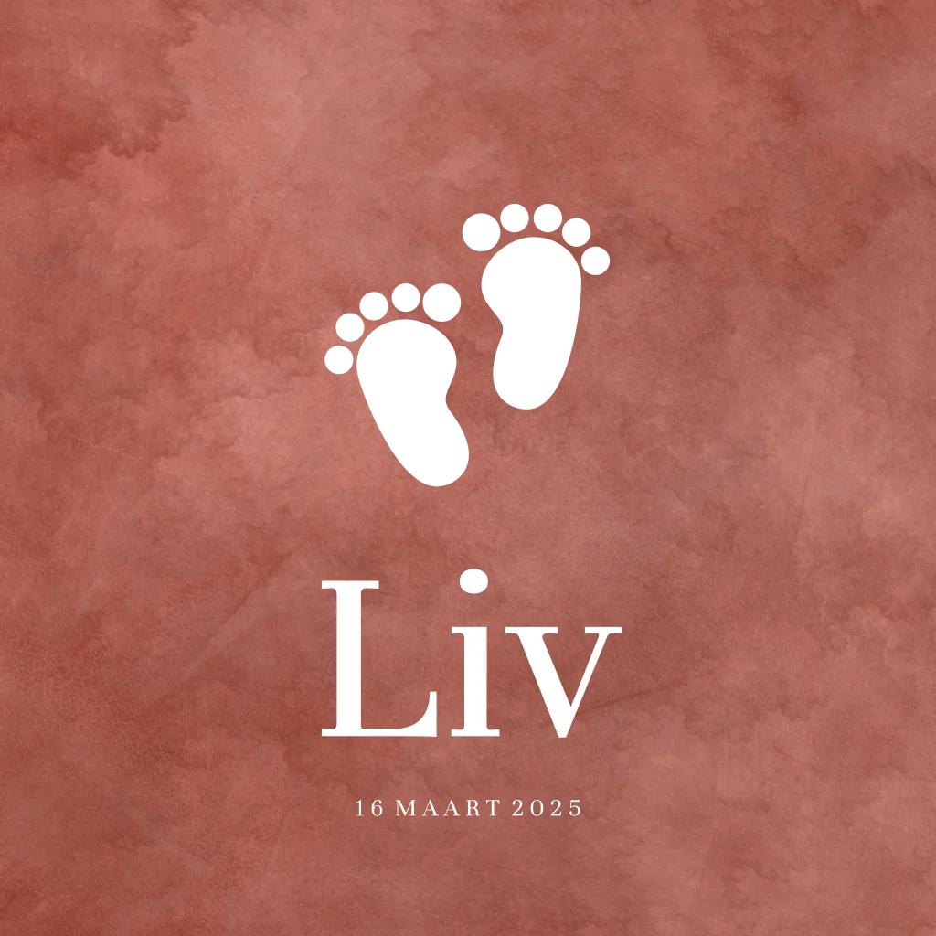 Velvet look geboortekaartje voor meisje met voetjes in goudfolie