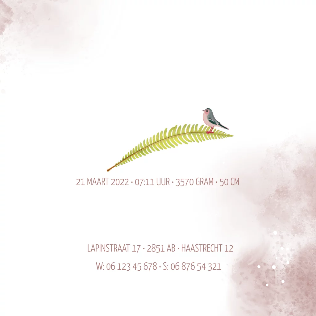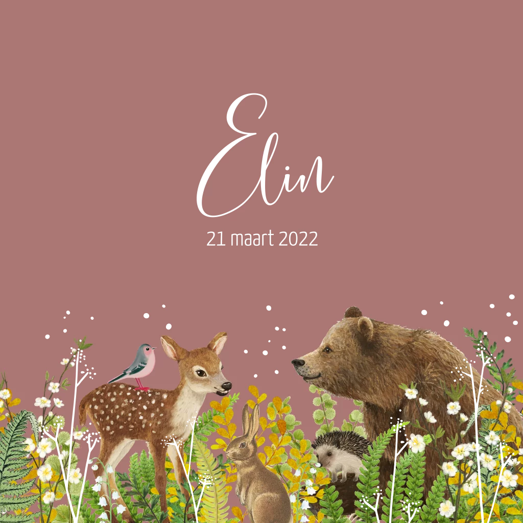 Lenteachtig bosdieren goudfolie geboortekaartje dochtertje oudroze