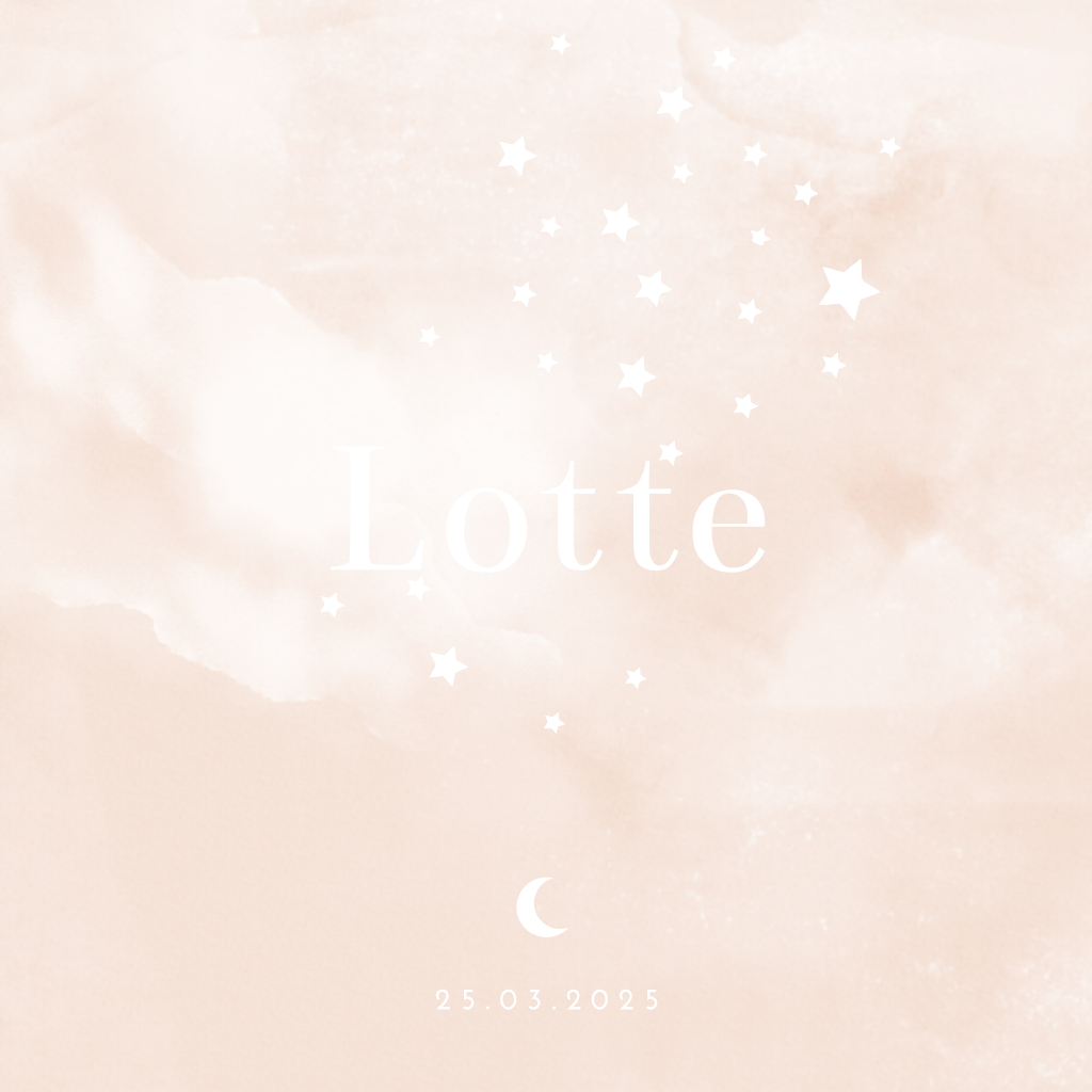 Dit schattige geboortekaartje heeft een ontzettend luxe uitstraling vanwege het goudfolie. Doordat er niet alleen folie wordt gebruikt voor de naam, maar ook voor de sterren, het maantje en de geboortedatum, is deze kaart extra uniek. De zacht roze achtergrond is een mooie combinatie met het goud.