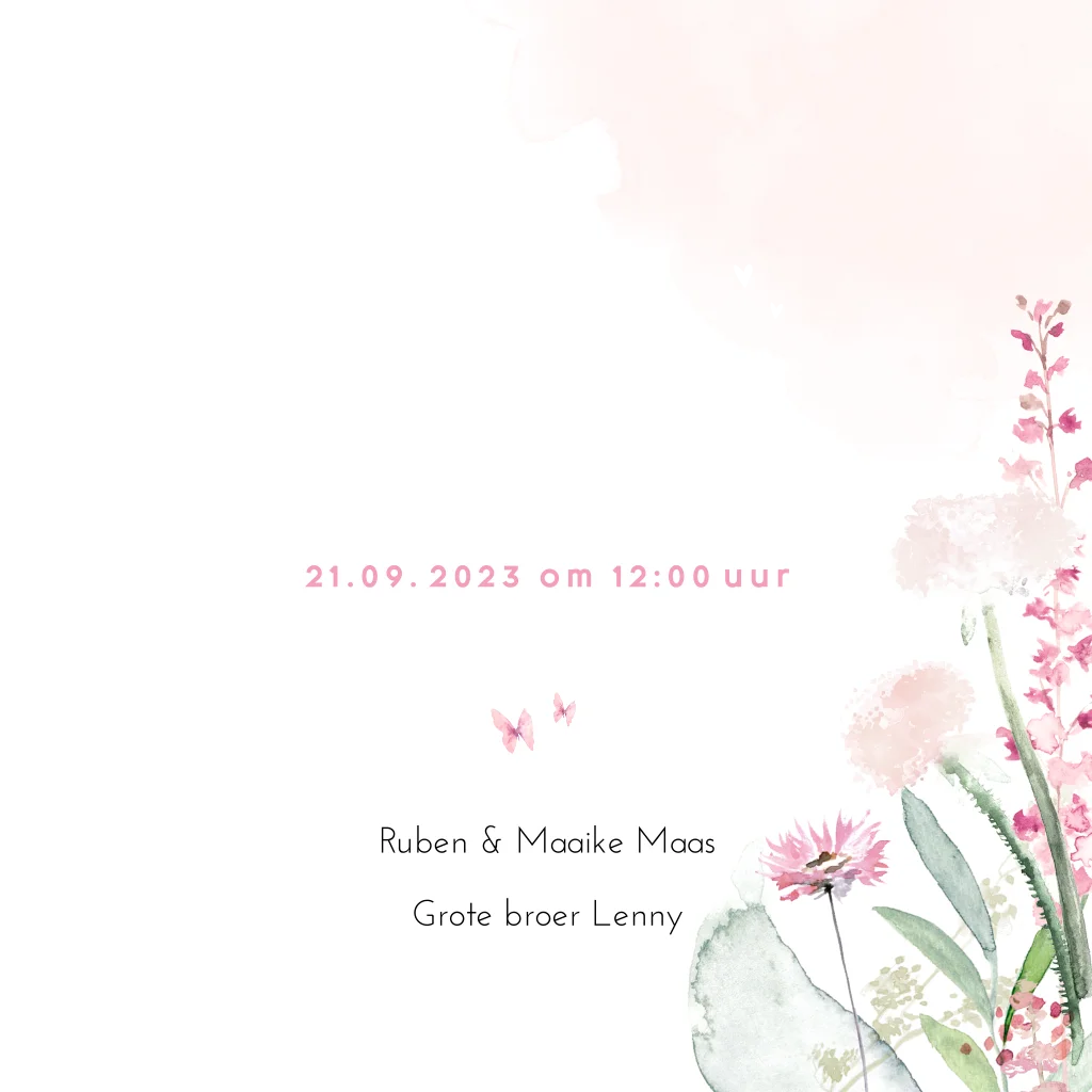 Een blij kaartje voor de geboorte van jullie dochtertje. Op dit exemplaar zijn verschillende stijlvolle roze bloemen te zien met wat mooie balderen. Alle aandacht gaat meteen naar de naam in luxueus goudfolie. Aan de binnenkant is er nog plaats voor een foto van jullie kindje.