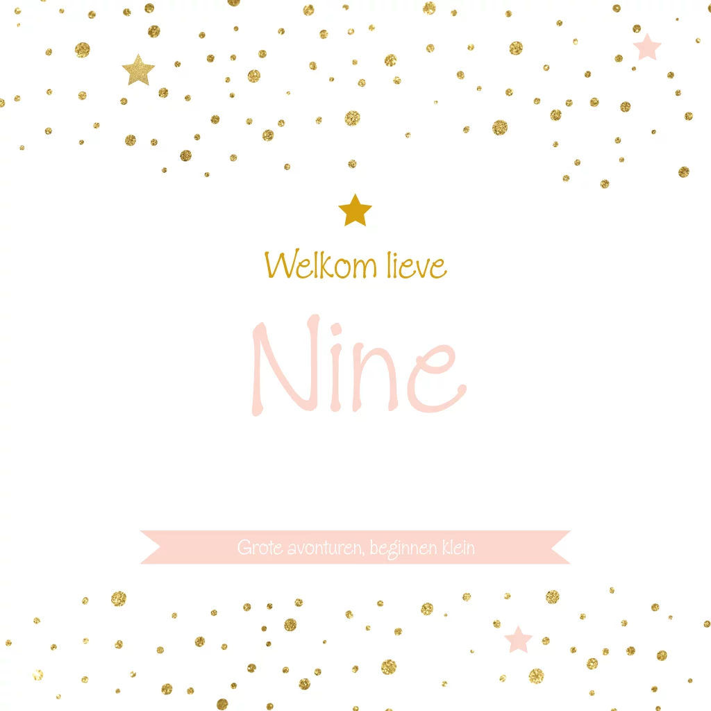 Chic goudfolie geboortekaartje voor meisje met hartje en stipjes
