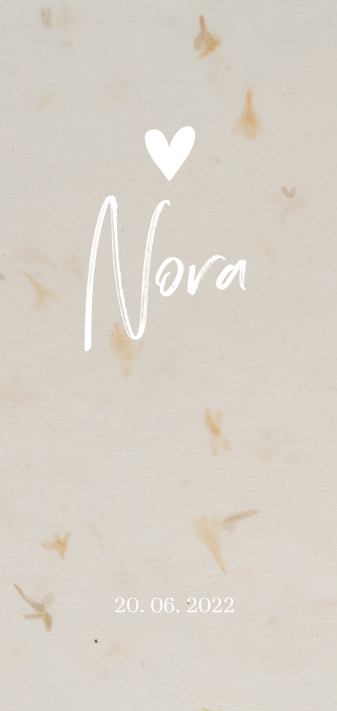 Trendy geboortekaart voor de geboorteaankondiging van je dochtertje met goudfolie hartje op een natuurlijk karton achtergrond.