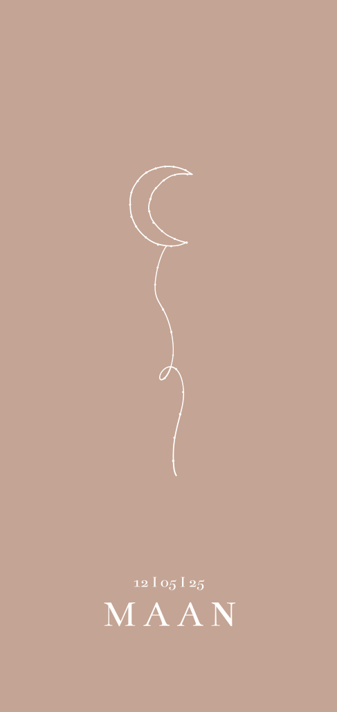 Hip geboortekaartje voor je dochter die helemaal past in de maantjes trend! Met een trendy goudfolie maan aan een slinger op een roze aardetint.