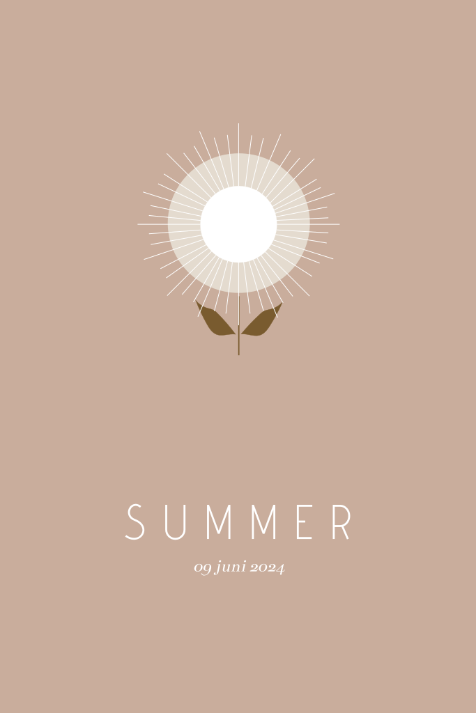 Verwachten jullie een kindje in de lente of zomer? Dit hippe babykaartje met de illustratie van een zon en bloem past daar goed bij! Het zonnetje en de naam van jullie dochter worden gedrukt in goudfolie en maken het kaartje letterlijk schitterend! Bewerk de teksten en kleuren naar wens in de online editor en maak zo een uniek geboortekaartje.