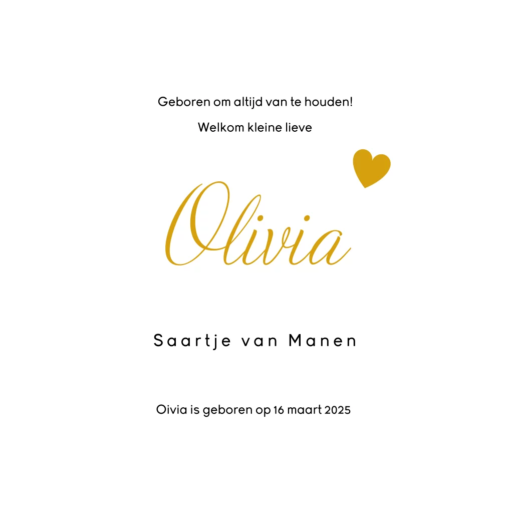 Op zoek naar een unieke kaart voor je pasgeboren dochter? De lieve gouden hartjesregen en sierlijke typografie in goudfolie maakt deze geboortekaart echt hip!
