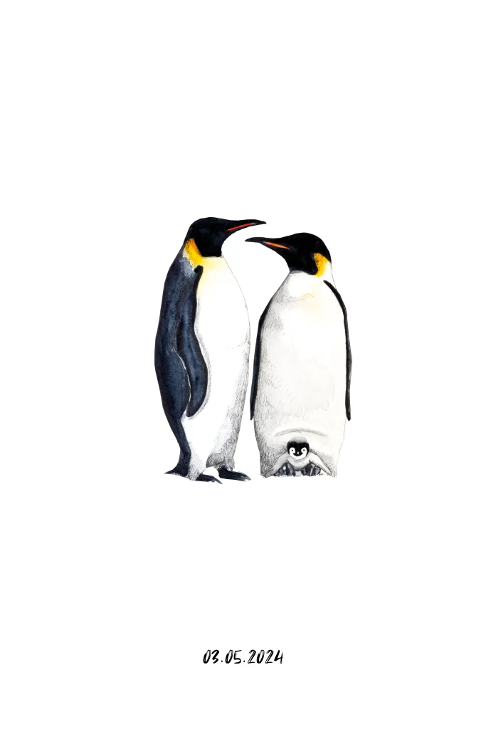 Wat een lief babykaartje! Met de illustratie van een stelletje pinguïns en een kleine baby pinguïn. De naam van jullie dochter en het hartje worden gedrukt in goudfolie en maken dit kaartje extra bijzonder!