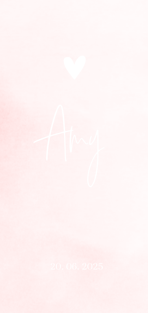 Trendy geboortekaartje voor je dochter met zacht roze aquarelverf achtergrond en goudfolie hartje.