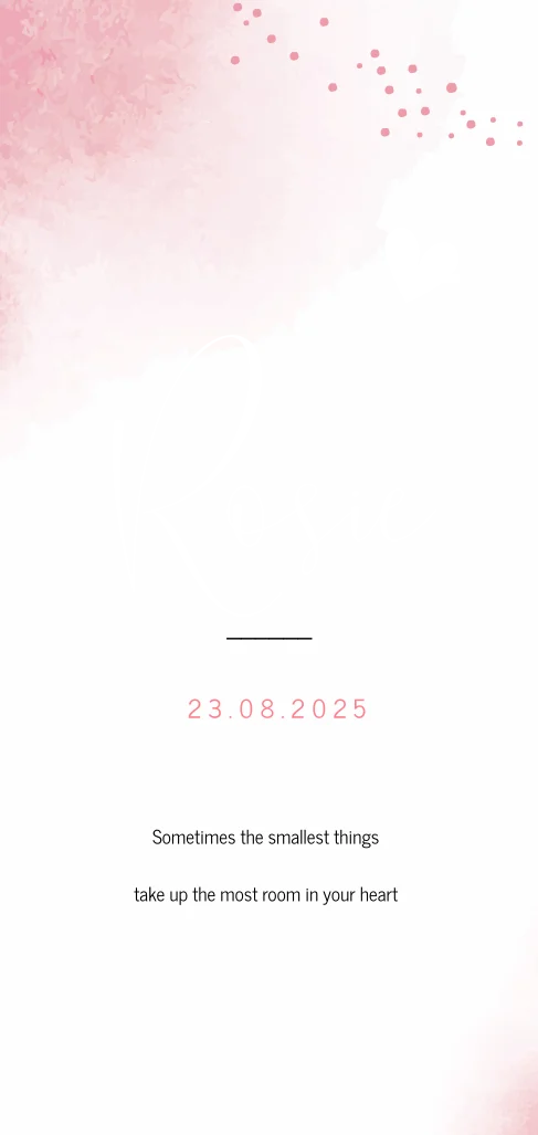 Uniek en eenvoudig geboortekaartje voor je dochter! Met goudfolie details en waterverf is deze geboortekaart helemaal volgens de laatste trends! Pas de teksten en kleuren aan en maak zo je eigen kaart.
