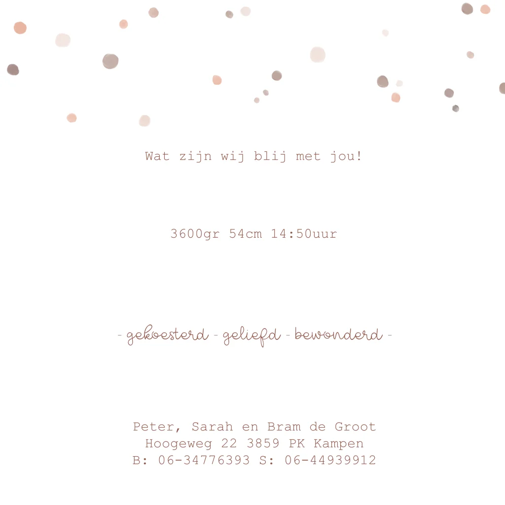 Stijlvol goudfolie geboortekaartje voor meisje met stipjes aardetinten