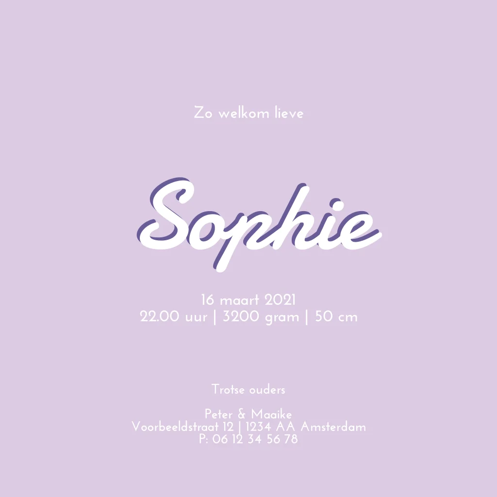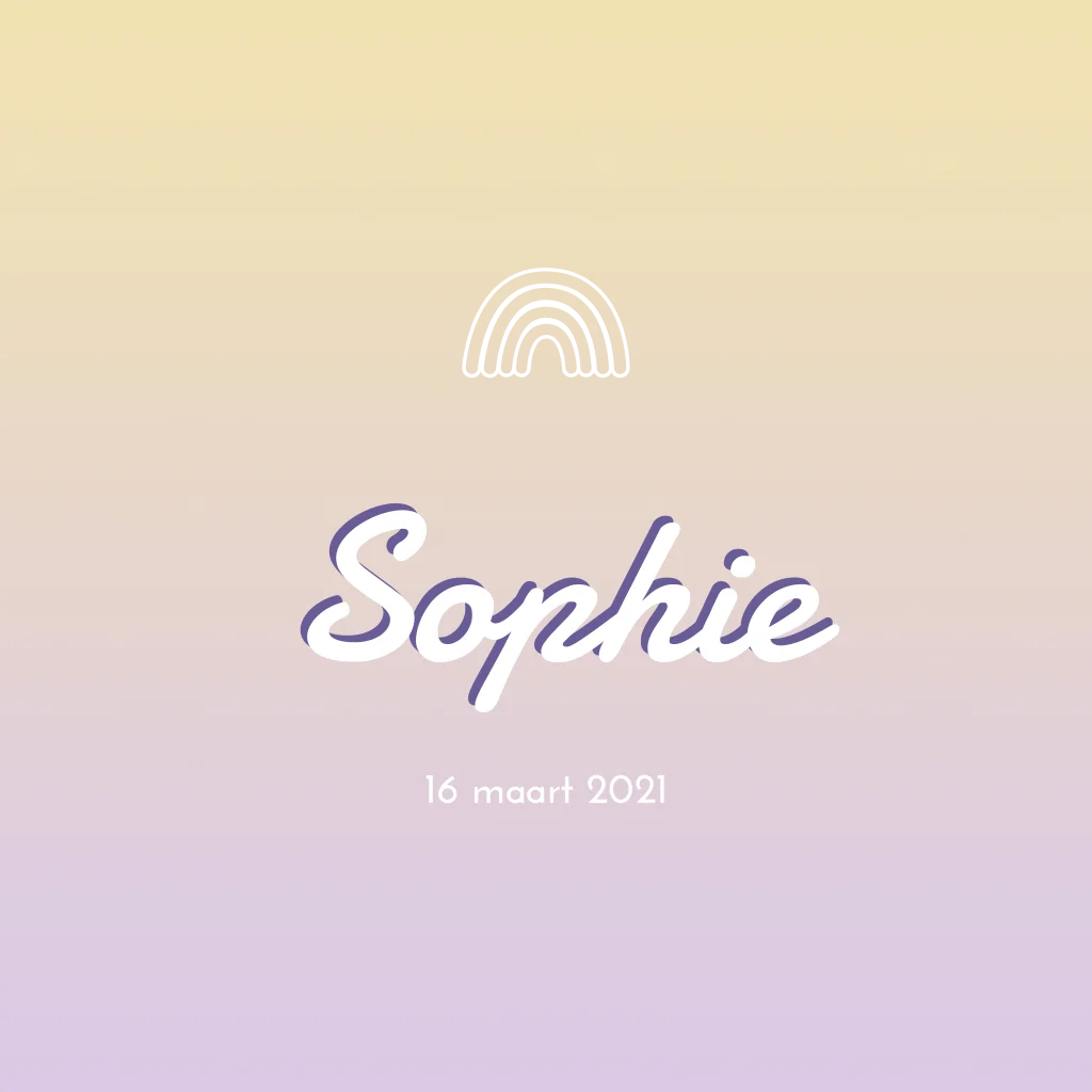 Een gaaf kaartje voor de geboorte van jullie dochtertje. Het kleurverloop op de achtergrond van geel naar paars is heel origineel. Het regenboogje in goudfolie maakt het ontwerp helemaal af.