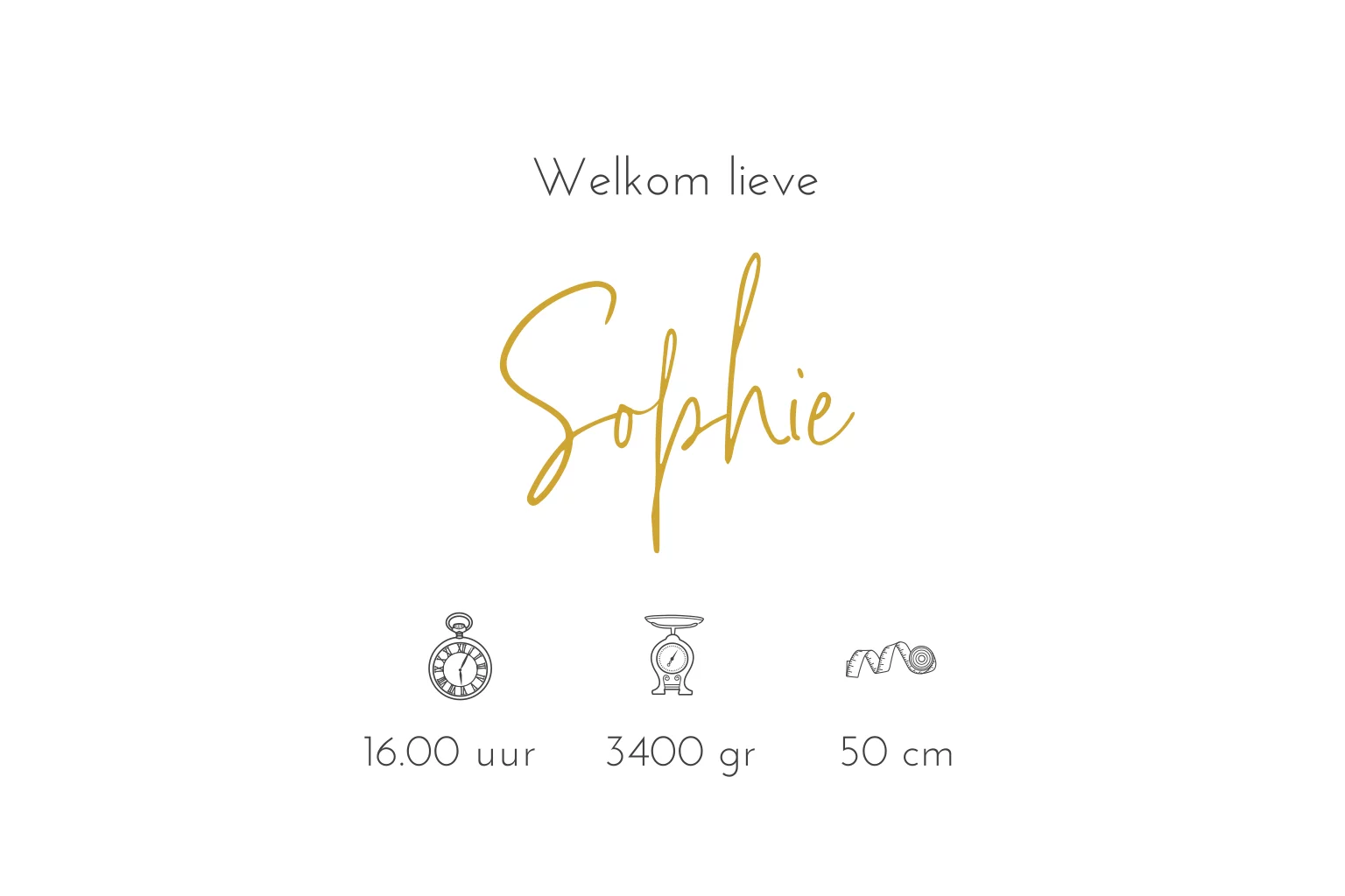 Hip en minimalistisch geboortekaartje met échte goudfolie. De naam is op de voor en binnenzijde in goudfolie en het gedichtje ook. Wist je dat je ook koper- of zilverfolie kunt kiezen? Dit pas je gemakkelijk zelf aan bij de kleur folie.