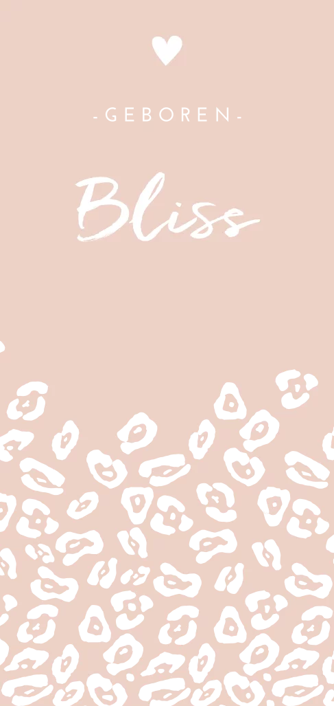 Stoer geboortekaartje voor je dochter met een roségoudfolie panterprintje op een oudroze achtergrond. Liever een andere kleur op de achtergrond of een andere folie kleur zoals goudfolie of zilverfolie? Pas het eenvoudig zelf aan in de online editor!
