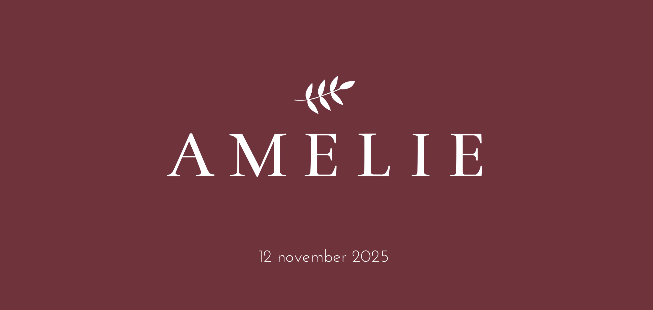 Hip en minimalistisch geboortekaartje voor de geboorteaankondiging van je dochter met een roségoudfolie bladertakje op een aubergine-kleurige achtergrond.