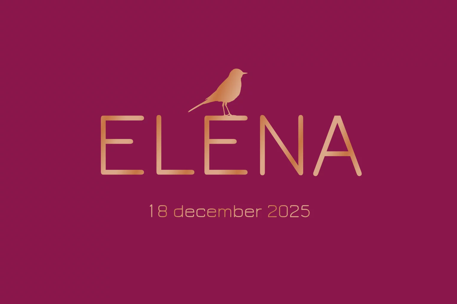 Minimalistisch geboortekaartje met een strak lettertype en silhouetje van een vogeltje op kersenrood. Liever een andere achtergrondkleur of lettertype? Deze hele kaart kun je eenvoudig aanpassen in de online editor!