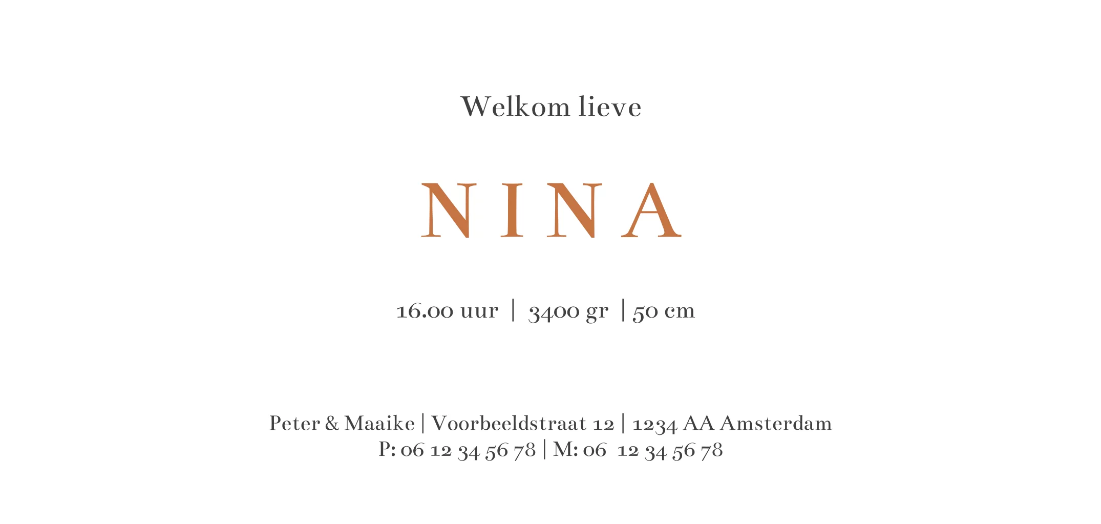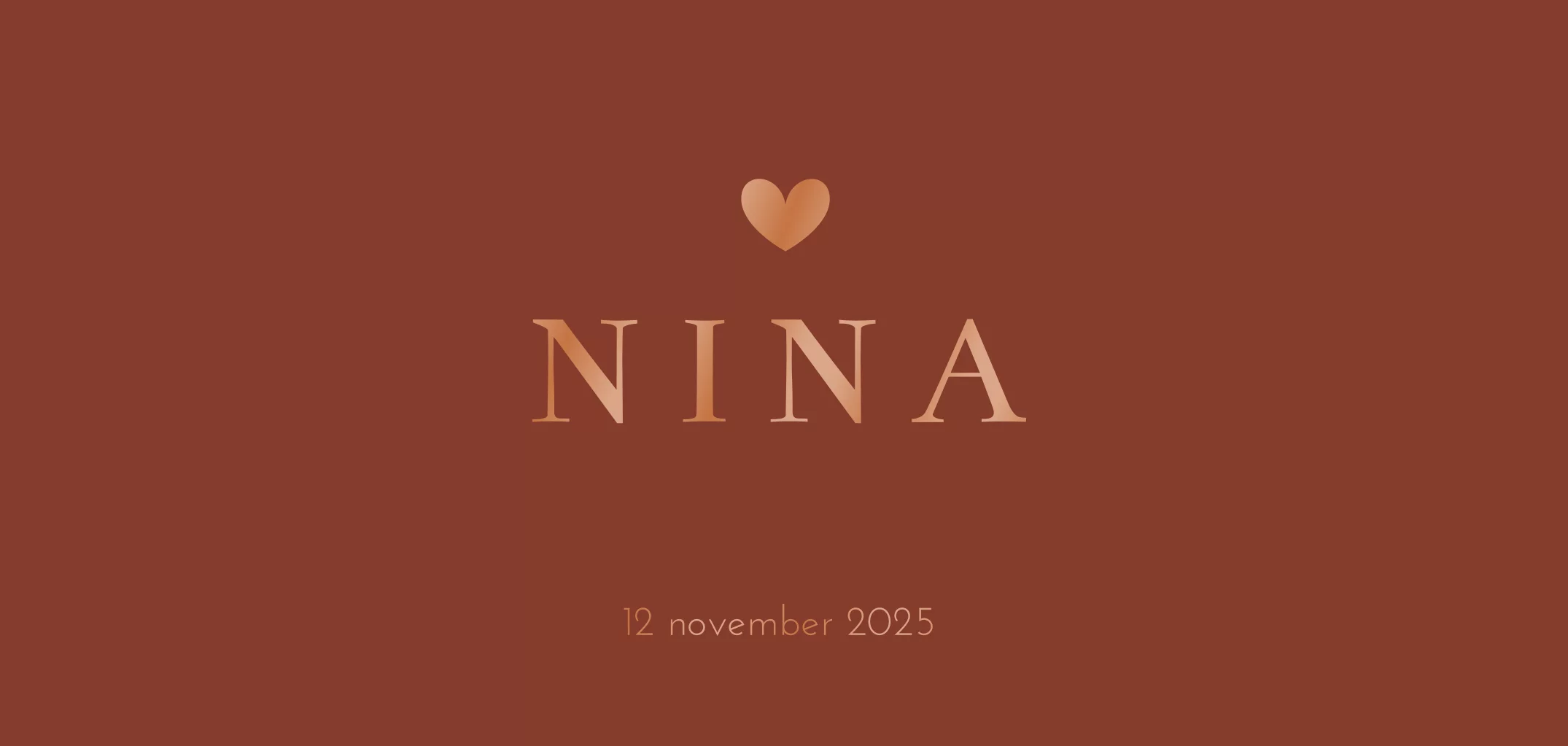 Uniek hoogglans geboortekaartje voor ene jongen of meisje in trendkleur roestbruin/roestrood. Het hartje maakt dit lieve kaartje helemaal af! Liever een andere clipart? Pas het zelf aan in de online editor!