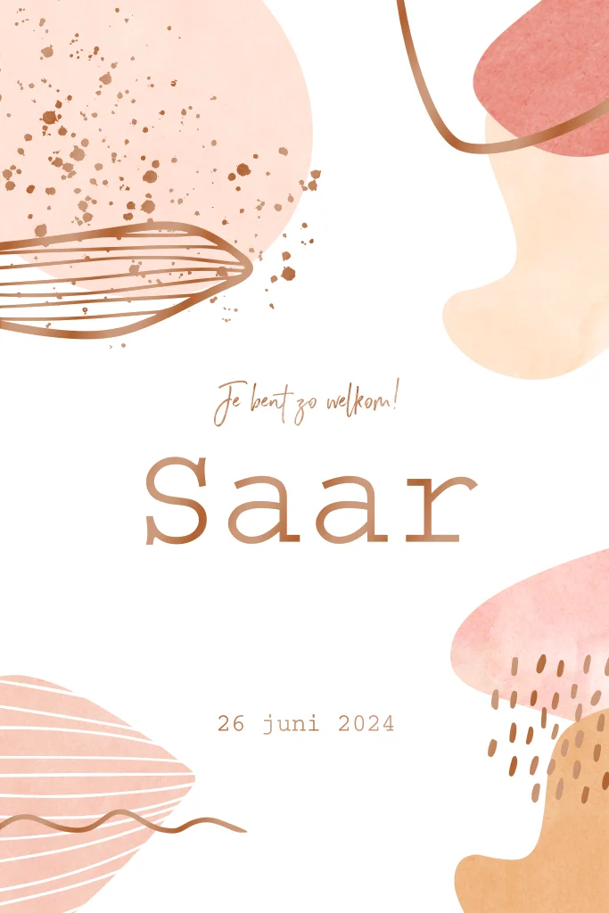Dit hippe geboortekaartje is erg origineel en daarom perfect voor de geboorte van jullie dochtertje. De vormen zijn erg origineel en geven het kaartje iets liefs. De details van hoogglans maken het echt een geheel.