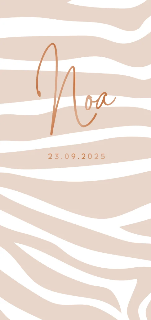 Ben je ook zo gek op de huidige jungle dieren trend? Dan is dit kaartje echt wat voor jou! Met een achtergrond van hippe zebra strepen in zacht roze gecombineerd met de babynaam in hoogglans in een trendy lettertype. Verander de kleuren en teksten en verstuur dit geboortekaartje als geboorteaankondiging van je dochtertje!