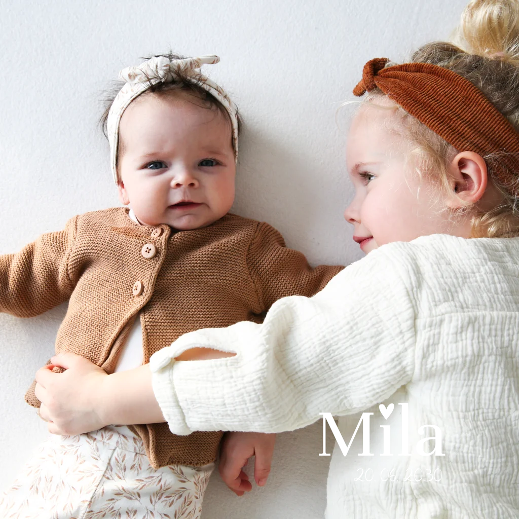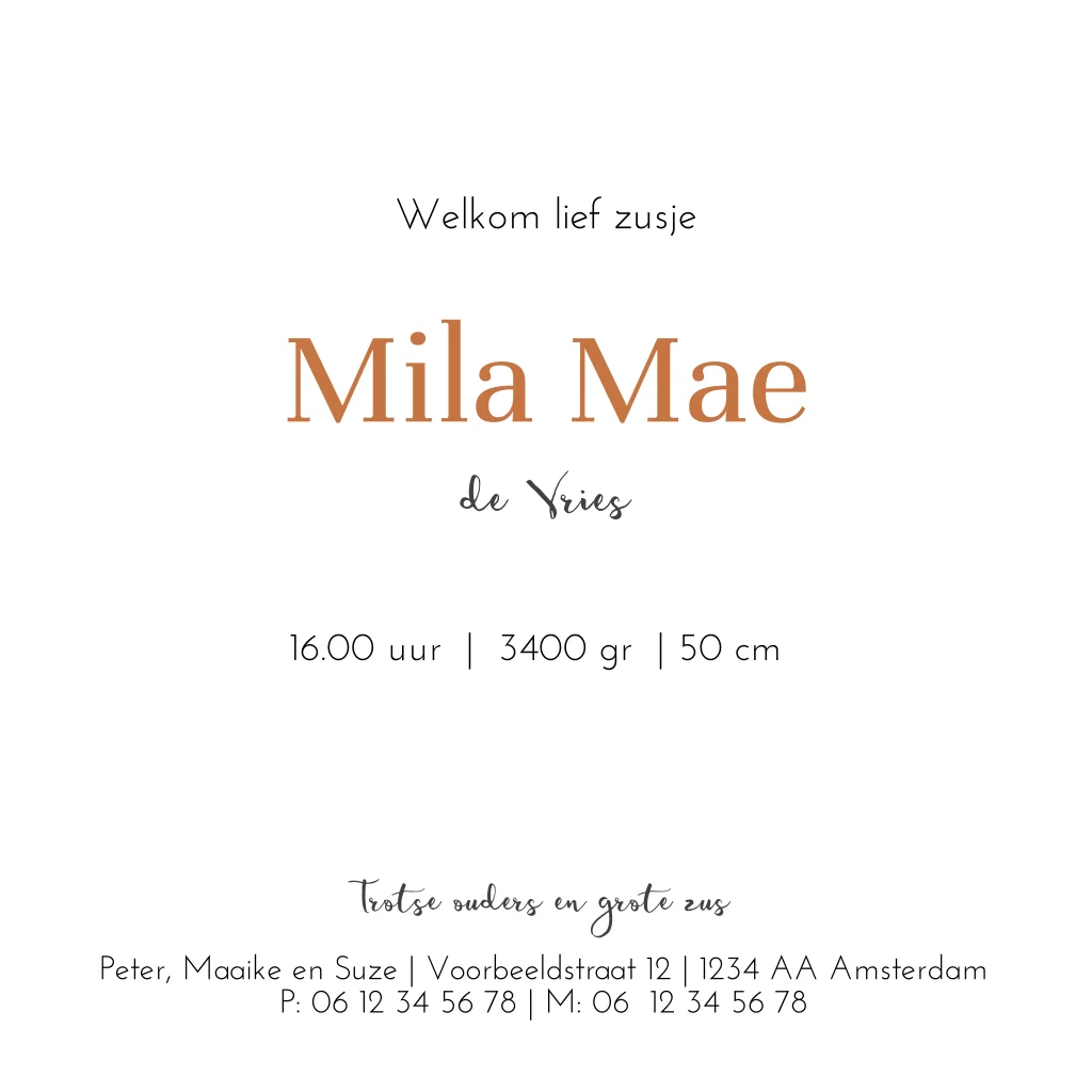 Trendy geboortekaartje voor een meisje met rosegoudfolie en een foto van twee zusjes. De foto van deze zusjes is gemaakt door: Chantal Uijtendaal fotografie