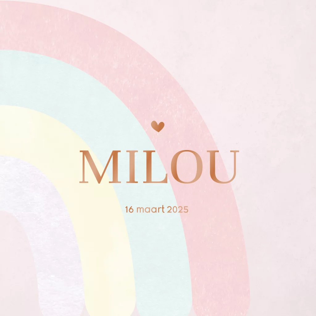Lief regenboog geboortekaartje met hoogglans
