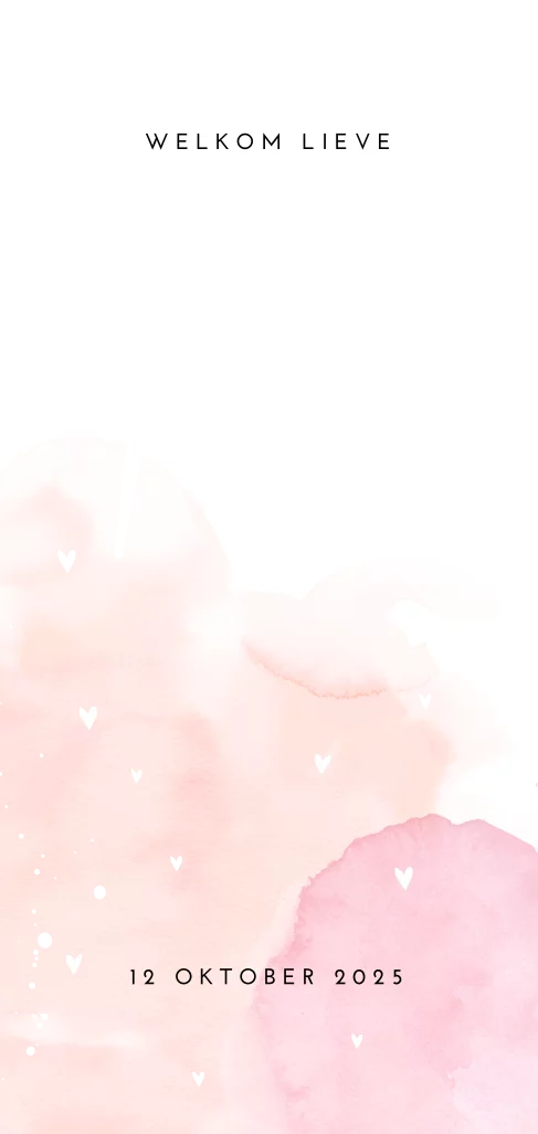 Lieve kleine hartjes in goudfolie, wat spetters en natuurlijk de naam van jullie kleine prinses in goud! Een schattig babykaartje voor een meisje in staand panorama. Een echte blikvanger.