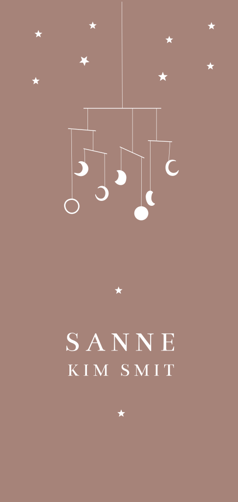 Hip geboortekaartje in oudroze met maantjes mobiel in goudfolie