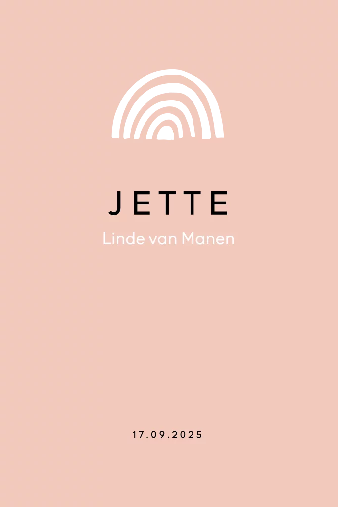 Lief geboortekaartje met regenboog in goud. De regenboog in goudfolie op dit roze kaartje maakt dit kaartje superuniek.