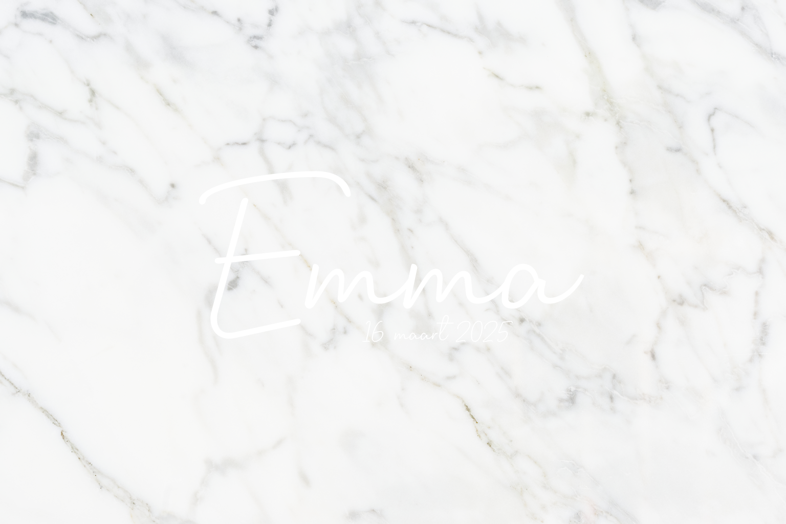 Een klassiek kaartje voor de geboorte van jullie dochtertje. De achtergrond heeft een wit met gouden marmerlook. De naam staat sierlijk geschreven en wordt gedrukt in echt goudfolie. De ronde hoeken maken dit kaartje helemaal af.