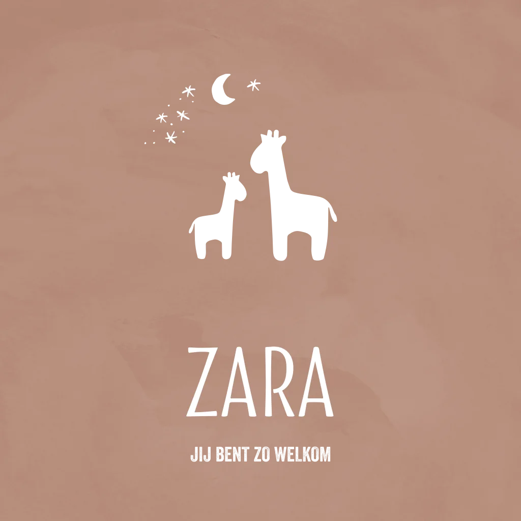 Geboortekaartje met roségoudfolie voor meisje met giraffes