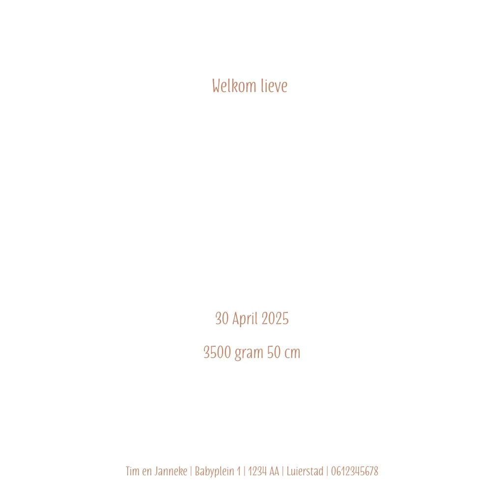 Lief roségoudfolie geboortekaartje voor meisje met lijntekening vosje