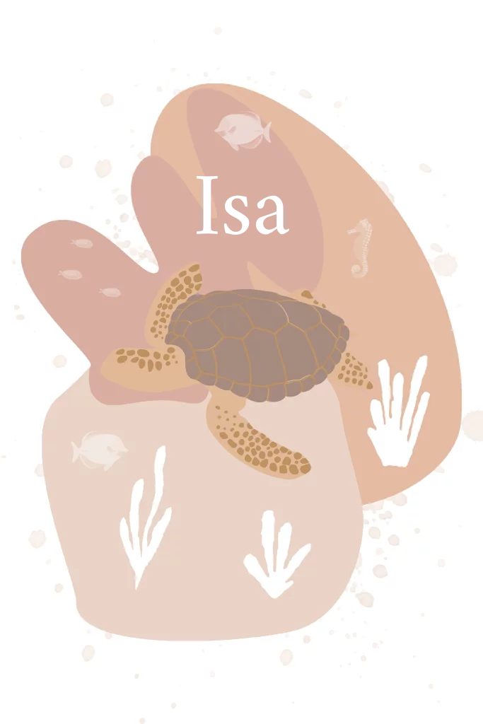 Trendy geboortekaartje met roségoudfolie voor je pasgeboren dochter met een hip geïllustreerde schildpad, zeepaardje en visjes. De achtergrond van organische vormen in trendkleuren maakt dit geboortekaartje echt af!