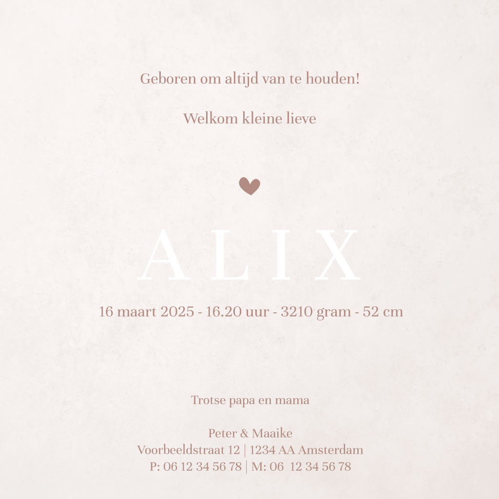 Roségoudfolie geboortekaart voor dochter met aardetinten