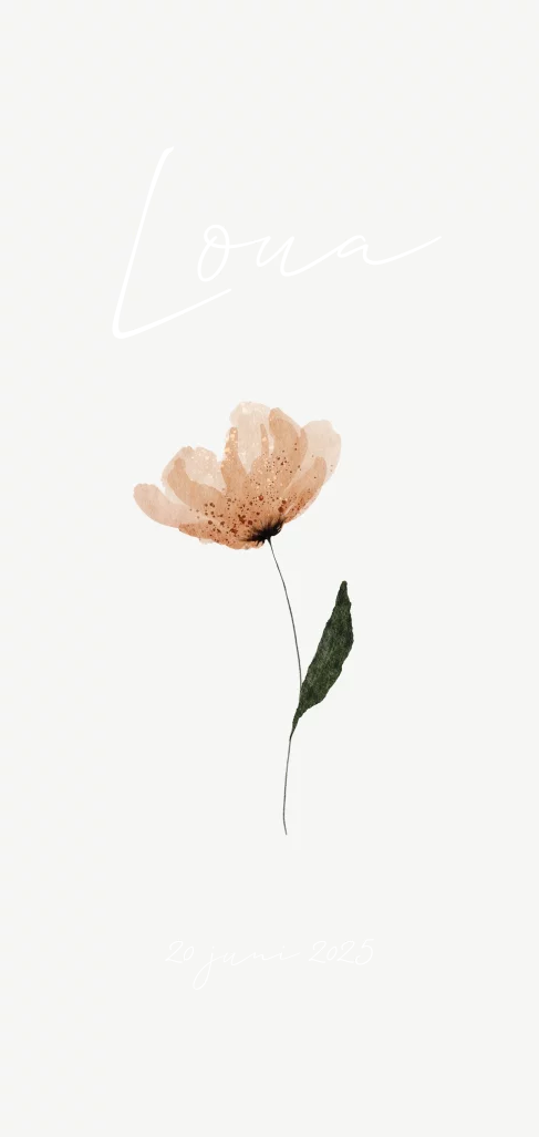 Een stijlvol geboortekaartje voor je dochter met een prachtige watercolour bloem. De naam is in sierlijk lettertype geschreven en in glanzend goudfolie gedrukt. In onze online editor kan je de kaart naar wens aanpassen.