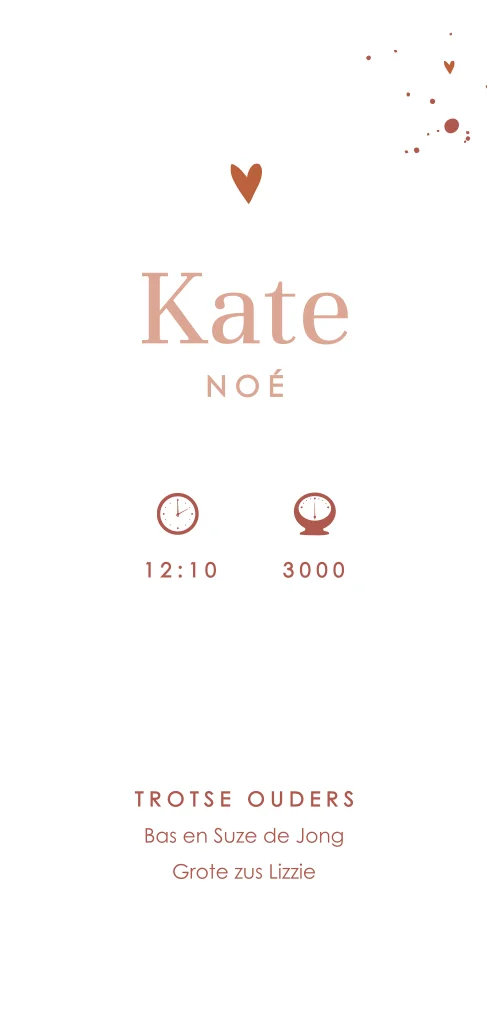 Kondig de geboorte van jullie tweeling aan met dit prachtige geboortekaartje met roségoudfolie. Pas het kaartje naar wens aan en bestel een proefdruk om dit stijlvolle kaartje in het echt te zien.