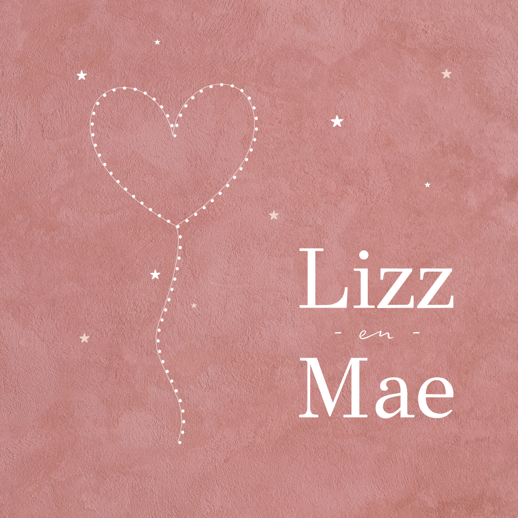 Hip geboortekaartje met roze velvet look achtergrond. Speciaal voor tweeling meisjes. Op de voorgrond staan een ballon in de vorm van een hartje en kleine sterretjes. De naam en deze elementjes worden in roségoudfolie gedrukt.