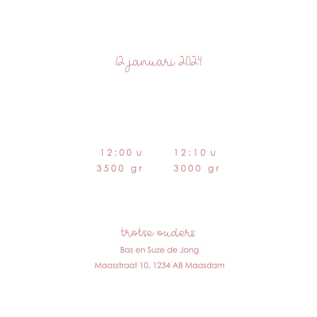 Velvet look tweeling geboortekaartje met roségoudfolie hartje