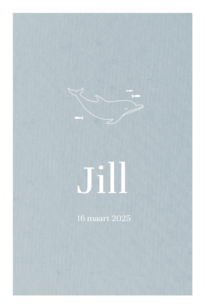 Een strak kaartje om de geboorte van jullie zoontje mee te verkondigen. Om het blauwe vlak is een strak wit kader geplaatst. In het midden staat er een mooie subtiele tekening van een dolfijn met wat vissen. Deze wordt, net als de naam van jullie kleintje, gedrukt in echt zilverfolie. Dit zorgt voor een luxe finishing touch.