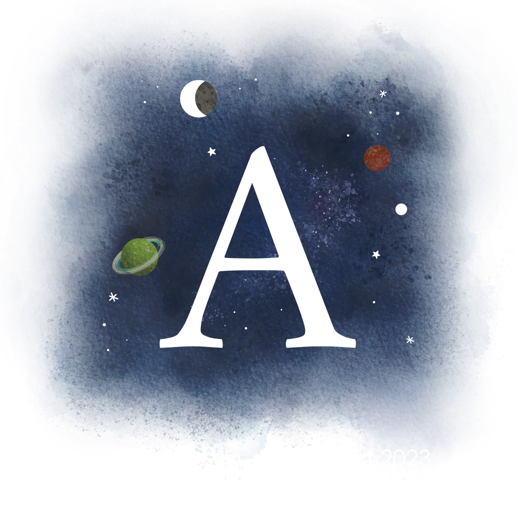 Hip goudfolie letter geboortekaartje voor je avontuurlijke zoontje met stoere watercolour planeten en maantje in het heelal.