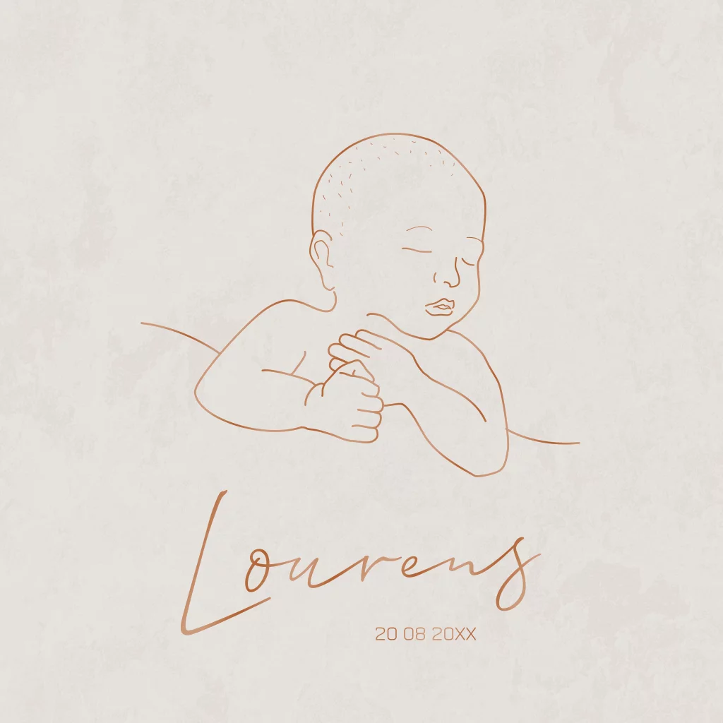 Luxe geboortekaartje met hoogglans lijntekening van baby