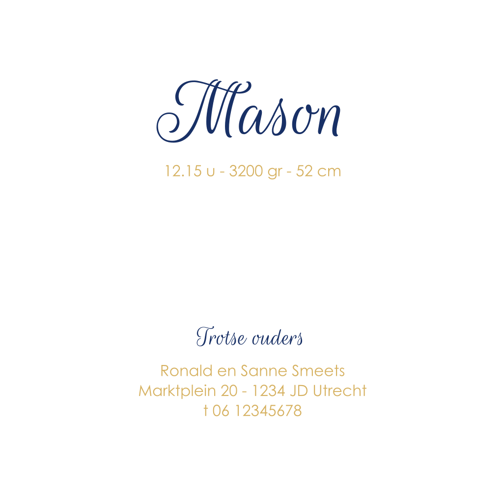 Dit stoere geboortekaartje met het geometrisch getekende vosje is ideaal voor jullie zoontje. De gouden accenten geven het kaartje een chique uitstraling.