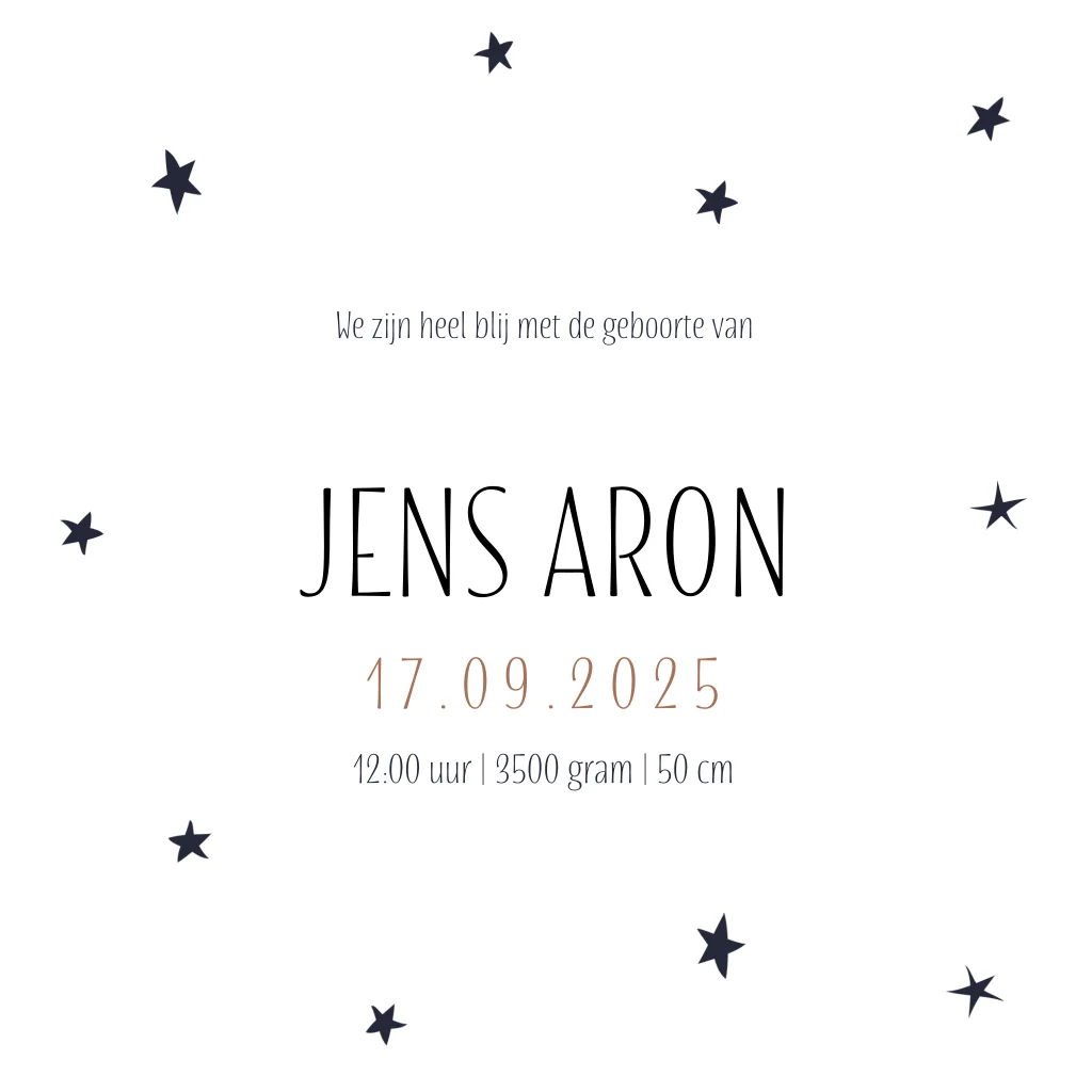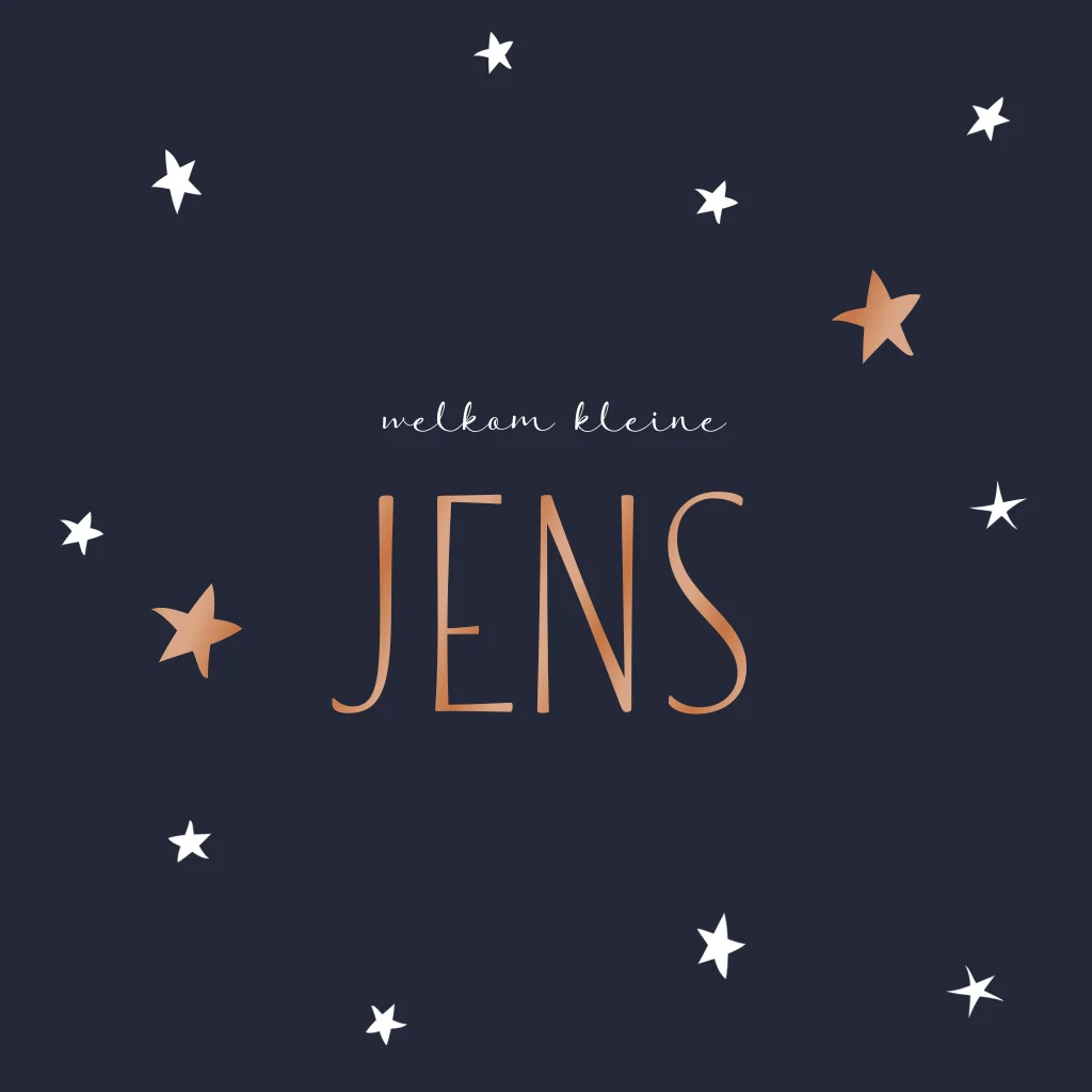 Geboortekaartje met hoogglans voor jongen met sterretjes koper